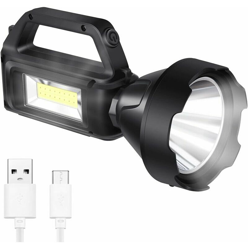 Torcia con lampada super leggera - torcia con lampada a luce forte, pulsante di commutazione a un pulsante, ci sono quattro modalità di funzionamento illuminazione, luce forte, luce debole, flash (SOS), luce laterale, la funzione può soddisfare la maggior parte delle tue esigenze. [Con illuminazione laterale] la torcia è ricaricabile e ha luci laterali, che è molto adatta come luce di emergenza familiare, luce da lavoro, luce da campeggio, luce per auto e può essere utilizzata anche come luce SOS. [Ricarica USB/Ricarica solare]Batteria ricaricabile integrata da 2000 mAh, torcia ricaricabile tramite cavo USB (incluso). Con i pannelli solari sul lato, supporta la ricarica solare e può essere ricaricata per uso esterno senza elettricità. [Materiale di alta qualità] La potente torcia è realizzata in materiale di alta qualità ABS ad alta resistenza, più luminoso e più forte della maggior parte delle normali torce elettriche. Il grado di impermeabilità IPX4 è adatto per attività all'aperto