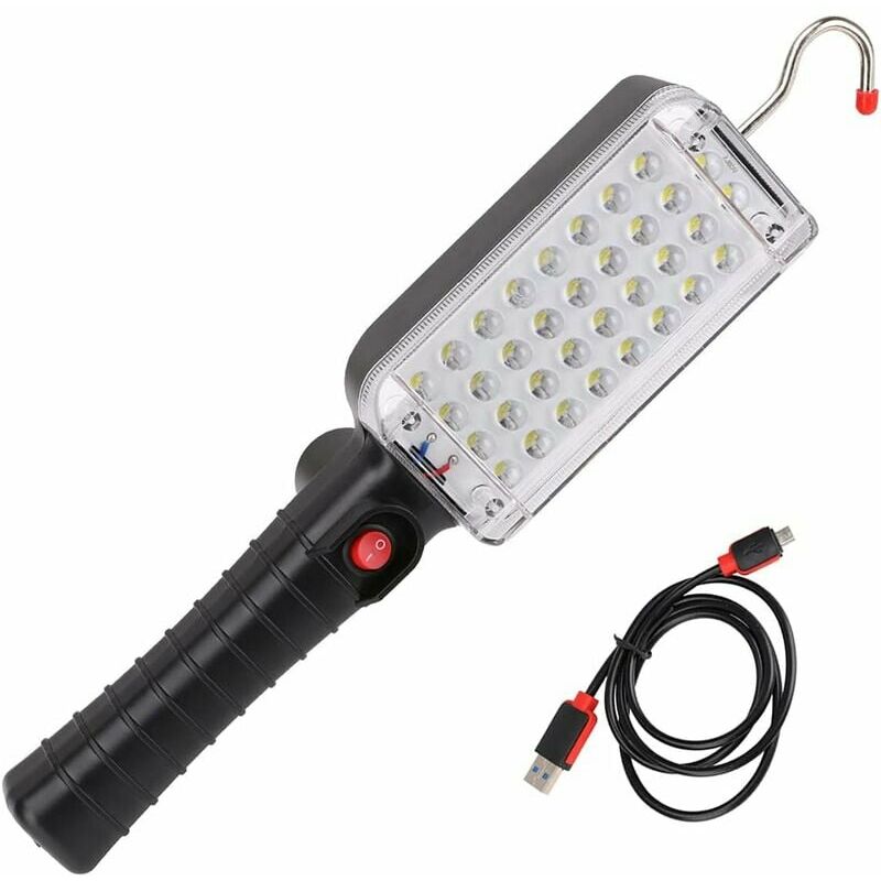 Realizzato in plastica ABS di alta qualità, leggero, portatile e resistente. 34 LED, super luminosi, efficienza energetica e protezione dell'ambiente. Batteria ricaricabile incorporata, ricarica USB, con gancio. Schienale magnetico, può essere fissato all'auto o a qualsiasi superficie metallica come luce da lavoro e luce da campeggio.< /p> Adatto per lavori all'aperto, campeggio, viaggi su strada, ispezione e riparazione di camion, emergenze, riparazioni domestiche, ecc. Descrizione: Nome: lampada da lavoro a LED ricaricabile . Materiale: ABS. Dimensioni: 33,5 x 6,4 cm. Colore luce: luce bianca. 1 modalità: 34 LED, illuminazione bianca super brillante. Interruttore: premere il pulsante. Batteria: batteria integrata. Metodo di ricarica: ricarica micro USB. Zoom: no. Utilizzo: riparazione automobili, magazzino, illuminazione esterna, ecc. Contenuto: 1 lampada da lavoro a LED con cavo USB