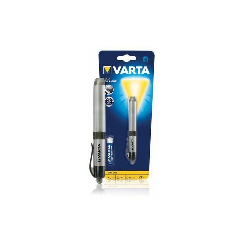 TORCIA LED PEN LIGHT Corpo in alluminio inossidabileLunga durata della batteria grazie al LED bianco da 5mmPratico clip di aggancio per taschinoDatiPeso con pile: 27.5 gr Lunghezza: 117 mmDiametro torcia: 14,00 mm Caratteristiche Fascio luminoso: 11m (0.25lux)Durata: 15h Capacità luminosa: 3 lumen Bulbo: 5mm LED Tipo di batteria VARTA: 1x High Energy AAA (inclusa)