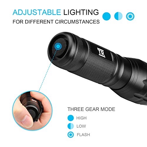 Torcia a LED con messa a fuoco regolabile, luce LED TechRise impermeabile, per interni ed esterni, campeggio, escursioni, ciclismo e emergenze.