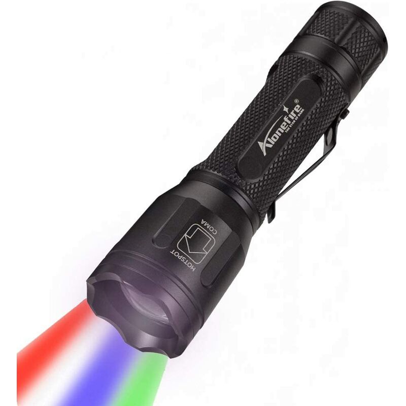 La torcia a LED 4 in 1 ha 4 sorgenti luminose a LED individuali (rosso, verde, blu, bianco), che hanno un'elevata luminosità, una distanza del raggio fino a 100 ~ 200 metri, la torcia elettrica soddisfa le tue diverse esigenze < p>L'alloggiamento utilizza una lega di alluminio di alta qualità, che ha notevolmente migliorato le sue prestazioni di dissipazione del calore, rendendo le torce più affidabili e durevoli Viene fornito con una batteria agli ioni di litio ad alta capacità e un caricabatteria con indicazione della batteria, il caricabatterie ha una protezione da surriscaldamento e sovraccarico, ti consente di utilizzare la torcia in modo più conveniente, non è necessario acquistare accessori aggiuntivi Messa a fuoco regolabile. ha una regolazione in modo da poter abbassare il raggio su e giù / verso l'interno o verso l'esterno Livello di impermeabilità IP6. Puoi usarlo nei giorni di pioggia e non devi preoccuparti dei danni