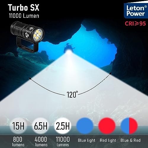Torcia subacquea, LetonPower TS SX 11000Lumens torcia subacquea professionale,100m torcia sub, torcia video subacquea CRI elevato,con ricarica Type-C per gli sport subacquei professionali all'aperto