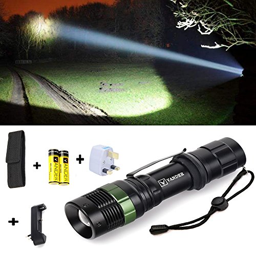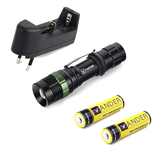 Torcia LED, Vander Life tattico Torcia 5000LUMEN super luminoso regolabile Focus XML T6 Torcia portatile campeggio impermeabile 5 modalità luce, 2 x ricaricabile 18650 agli ioni di litio batterie incluse
