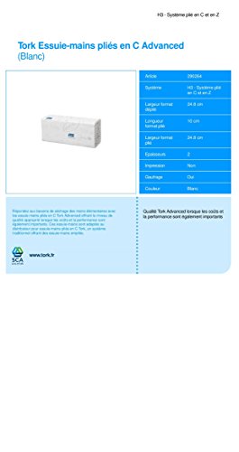Tork 290264 Asciugamano a mano di carta da c-fold per distributori commerciali, 2 strati, resistenti allo strappo, grande, bianco, confezione da 2400