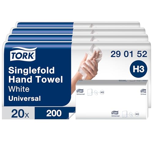 Tork Singlefold Hand Towels 290152 - H3 Salviette di carta piegate universali per dispenser Singlefold - economiche, 1 strato, bianche - 20 x 200 fogli