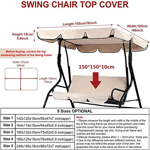 Torlia Tettuccio di Ricambio Universale per Altalena da Esterno per Sedia a Dondolo, Copertura di Ricambio Impermeabile per Altalena da Giardino, Patio, Altalena-Beige_249 * 185 * 18 cm