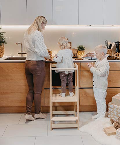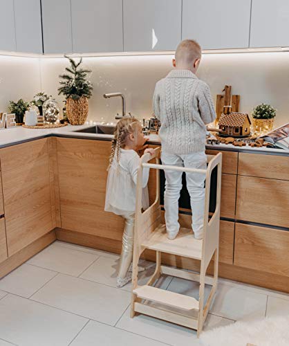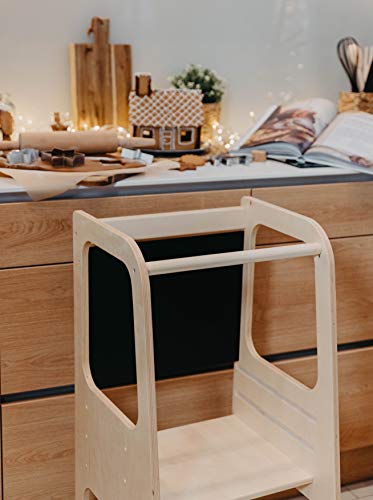 Torre di apprendimento - Sgabello Montessoriano con Scala Regolabile - Torre Montessoriana in Compensato di Betulla per Bambini - Tavolo, Lavandino - Capacità 50kg