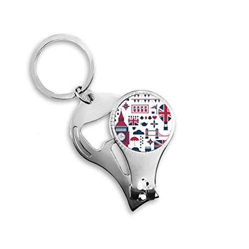 Torre Ballon soldato bandiera Regno Unito Big Ben England Landmark Mark illustrazione metallo anello portachiavi auto multi-funzione tagliaunghie apribottiglie portachiavi migliore regalo di fascino