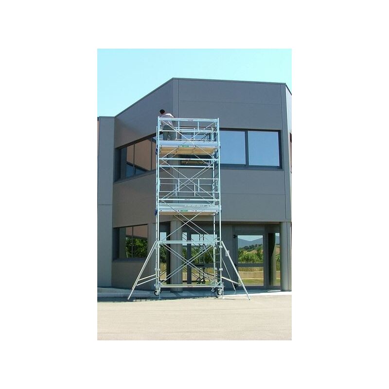 Dimensioni torre: m 1,20 x 2,00 en 1004 classe “3” portata max kg 390 system è la grande famiglia dei ponteggi in acciaio. sei dimensioni tutte compatibili tra loro, senza ancoraggio al muro, facili e rapidi da montare, sono progettati, testati e certificati secondo gli standard della norma europea en 1004. la solida struttura in acciaio permette di lavorare in assenza di oscillazioni, il trattamento di zincatura elettrolitica protegge le superfici dalla ruggine. • tubo di acciaio e 260, ø mm 45 • in acciaio zincato antiruggine. • ruota en 1004 • basi: ruote ø 200 mm con freno, certificate en 1004, bolle per il controllo dell'orizzontalità (optional). n. 4 piedini regolabili estraibili di serie con dispositivo antisfilo.• alzata: standard h m 1,50, optional h m 0,90. con aste a crociera. per facilitare la salita dall'interno, così come prevede la norma europea en 1004, i telai hanno i pioli con passo 30 cm e rigatura antisdrucciolo. • piani di lavoro: en 1004 con struttura portante in