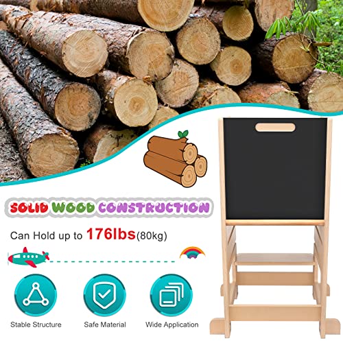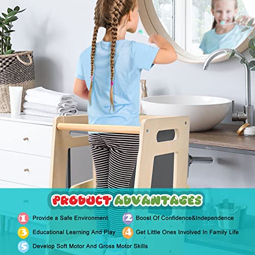 Torre Montessoriana di Apprendimento,Aomdom Legno Learning Tower con Lavagna Scala Montessoriana per Bambini dai 18 Mesi ai 3 Anni Trasformabile in Banco Scuola