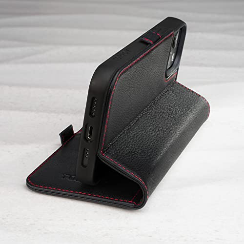 TORRO Custodia Compatibile con iPhone 14 Plus - Cover in Vera Pelle con Supporto per Carte e Funzione di Supporto (Nero)