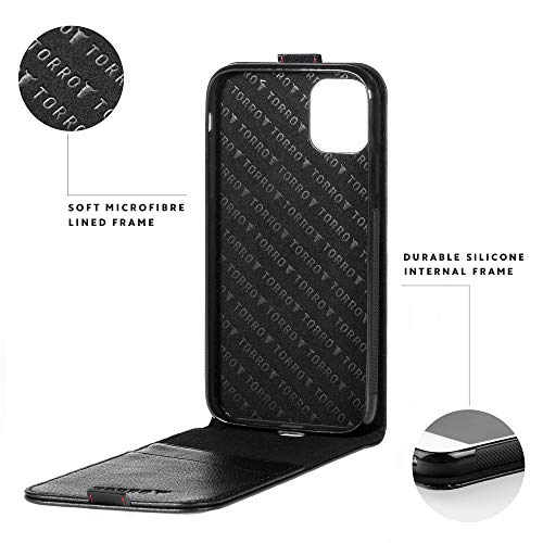 TORRO Custodia Flip Verticale in Vera Pelle Compatibile con Apple iPhone 11 PRO (Nero)
