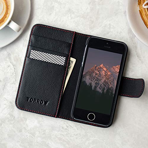TORRO Custodia Portafoglio Compatibile con Apple iPhone SE (2016), iPhone 5S e iPhone 5 in Vera Pelle di qualità con [Slots per Schede] 4” (Nero)