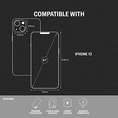 COMPATIBILITÀ - La custodia a portafoglio TORRO in vera pelle è stata progettata e realizzata esclusivamente per iPhone 13. (Ci sono 4 modelli nella gamma iPhone 13, si prega di verificare la compatibilità del modello prima di ordinare). La vestibilità di precisione garantisce un accesso completo e illimitato a schermo, fotocamera, pulsanti e porta di ricarica.