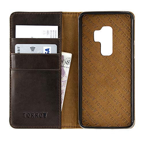TORRO Custodia Stand in Vera Pelle Compatibile con Samsung Galaxy S9+ (Marrone Oscuro)