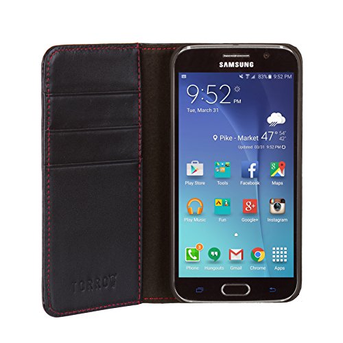 TORRO Custodia Stand in Vera Pelle Compatibile con Samsung Galaxy S6 (Nero)