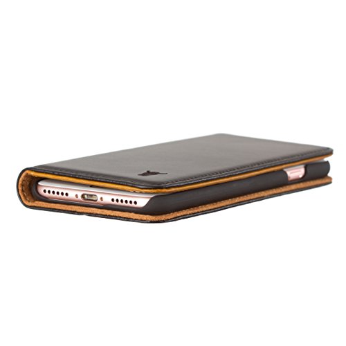 TORRO Custodia Stand in Vera Pelle Compatibile con Apple iPhone 8 Plus E iPhone 7 Plus (Nero con Marrone Chiaro)