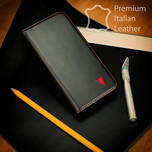 TORRO Huawei P9 Leather Case, Premium, Black Italian Leather Case/Cover with Stand Function by (Black Italian Leather, Huawei P9)