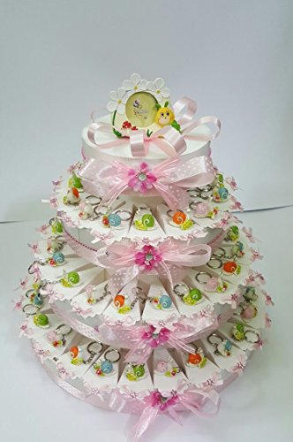 TORTA BOMBONIERE LUMACHINE A PORTACHIAVE CON STRASS COLORI ASSORTITI COMPLEANNO, NASCITA, BATTESIMO COMUNIONE CRESIMA COMPLETA DI BIGLIETTINO (25 FETTE)
