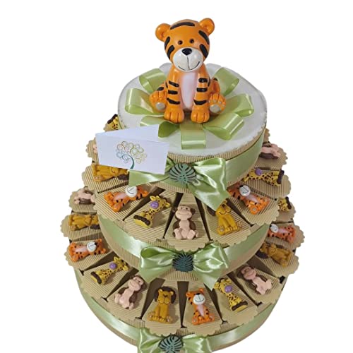 Torta bomboniere magneti tema savana animaletti assortiti confetti e biglietti inclusi (35 fette + centrale)