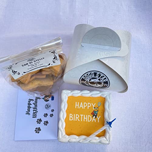Abbiamo creato per te un'offerta unica ed esclusiva che include una torta artigianale per il tuo amico a quattro zampe, realizzata con ingredienti naturali e selezionati, una confezione di biscotti Can Di Stelle da 220 gr, croccanti e gustosi, un biglietto di auguri di compleanno per cani e una candelina.