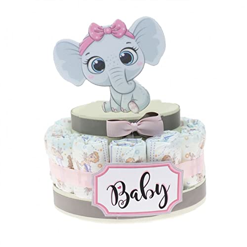 Torta Pannolini Elefante Effye Bimba Idea Regalo Nascita Economica, idea regalo nascita economica e originale (Torta da 30 Pannolini)