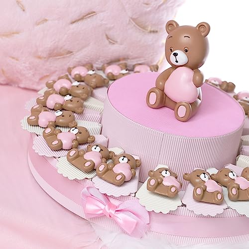 Torte con Orsetti Cuore Bomboniere Nascita Bimba Magnete MilleCuori TR1004M (Torta da 90 Fettine)