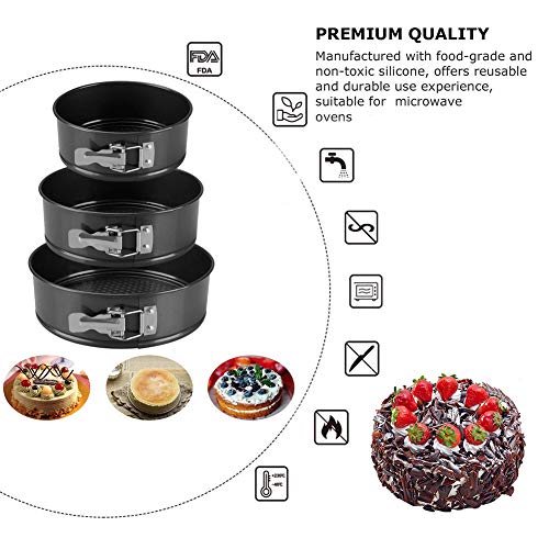 Tortiera apribile, 3 Pezzi Cheesecake Stampi Antiaderente Teglia da Forno Rotonda con Fondo Rimovibile, con Rivestimento Antiaderente, Stampo Tondo per Torte in Acciaio al Carbonio, Set da 3