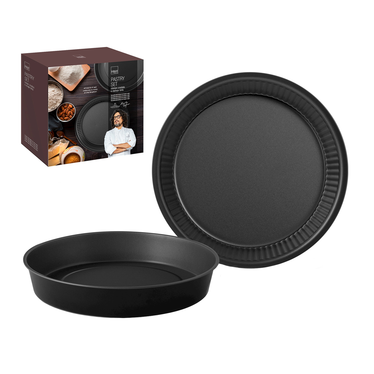 L'esperienza H&H Lifestyle incontra la professionalità dello chef Alessandro Borghese dando vita a una linea di accessori cucina che renderà le tue ricette facili da preparare e gustose da mangiare. Set 2 tortiere: il set da pasticceria si compone di uno stampo da crostata dal bordo a righe con diametro 28 cm e altezza 4 cm e una tortiera liscia con diametro 28 cm e altezza 5 cm;