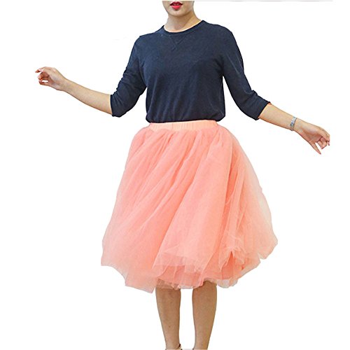 Tortoise & Rabbit Donne Festa di Matrimonio Balletti Danza Elastico in Vita Maxi 6 Strati di Tulle Garza Gonna Tutu a Pieghe Lunga Long Skirt (Rosa)