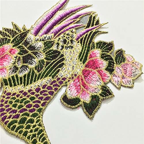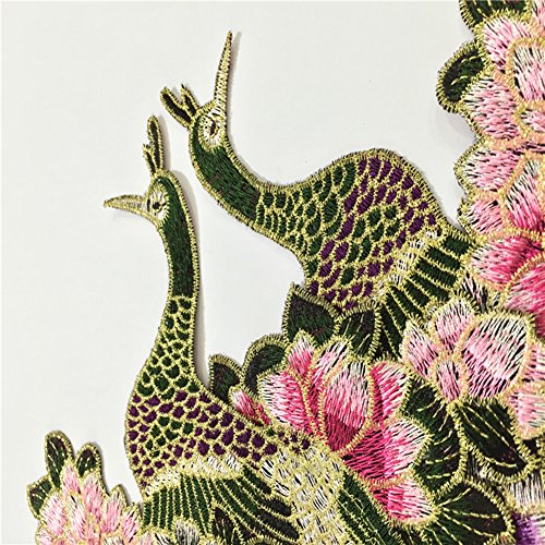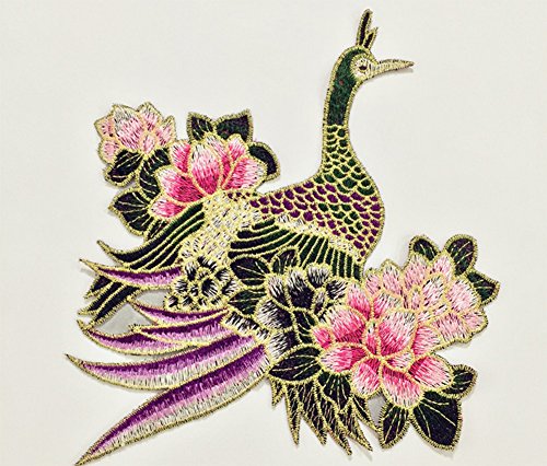 Toruiwa - Patch ricamata termoadesiva, motivo: fiore di loto e pavone, toppa da cucire per abbigliamento, maglietta, jeans, giacca, gonna
