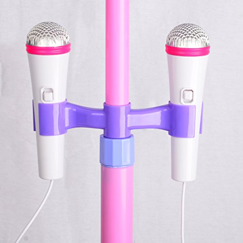 Tosbess Karaoke Microfono Bambini con Asta, Microfono Karaoke Set con 2 microfoni con Connessione MP3/Telefono Cellulare,USB Ricaricabile (Rosa)