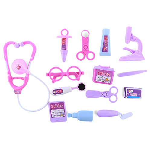 Tosbess 15 Pezzi Valigetta da Dottore Medico Kit con Accessori Gioco di Ruolo Educativo per Bambini 3+ (Viola)