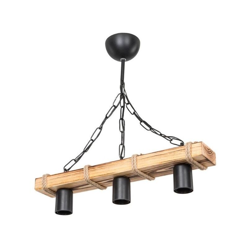 Lampada a sospensione rustico industriale a 3 luci Lagun - ASZ1236 La lampada a sospensione Lagun è una soluzione di illuminazione rustico industriale perfetta per qualsiasi ambiente. Con tre luci e un'altezza di 47 cm, questa lampada è ideale per illuminare la tua cucina, sala da pranzo o soggiorno. Il design in metallo nero e corda aggiunge un tocco di stile rustico alla tua casa. Con l'installazione facile e veloce, la lampada a sospensione Lagun è un'ottima scelta per creare un'atmosfera accogliente e luminosa nella tua casa. Caratteristiche: Materiale legno, corda e ferro Colore legno naturale Porta lampade colore nero 3 punti luce Altezza legno 3,5 cm Attacco lampadine 3 x E27 60 Watt Dimensioni: Altezza 47 cm Larghezza 48,5 cm
