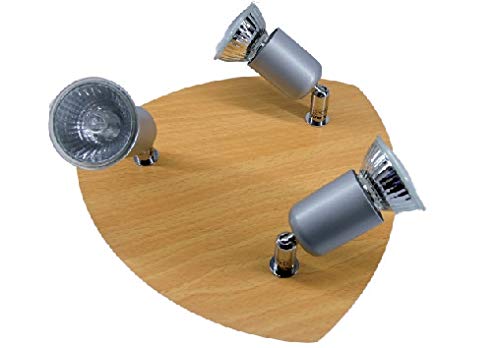 Lampadario applique a soffitto 3 faretti colore faggio chiaro - forma circolare - faretti inclusi - Faretti orientabili - 3 Faretti da 50 Watt - Misure cm 23,5 X 23,5