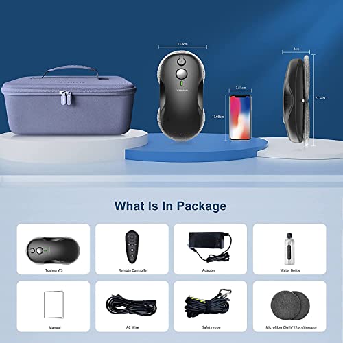 Tosima W3 Robot Lavavetri,Automatico a Spruzzo Bidirezionale con Triplo Sistema di Sicurezza,Navigazione Intelligente,Telecomando,per Tutte le Superfici Lisce,con 12 Panni