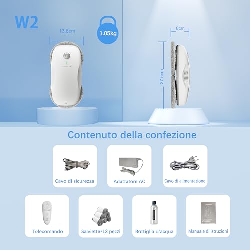 Tosima W2 robot lavavetri,per la pulizia delle finestre con 3800Pa forte aspirazione, triplo sistema di sicurezza,robot per la pulizia delle finestre remoto con 12 pc stracci