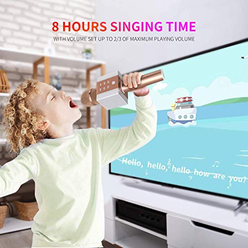 TOSING 008 Microfono Karaoke Bluetooth wireless, volume maggiore 10W, più basso, 3-in-1 Microfono portatile con doppio altoparlante per Android/PC (Oro rosa)