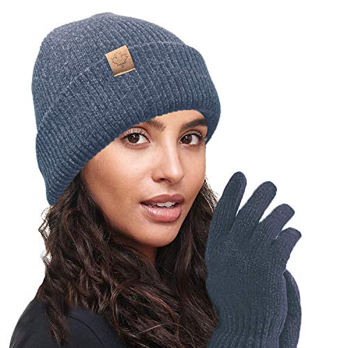 TOSKATOK Set di guanti e berretto in ciniglia con fodera termica calda da donna