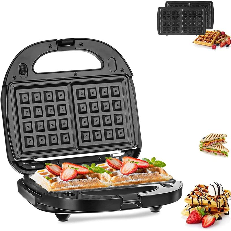 Funzione - La macchina per waffle può soddisfare tutte le tue esigenze, facilitando la preparazione di una deliziosa colazione. 【Pannello antiaderente a riempimento profondo】 Il pannello è progettato con un rivestimento superficiale antiaderente per resistere alle alte temperature e alla corrosione. Applicare un po' d'olio sul piatto e il cibo non si attaccherà al piatto e cuoceranno perfettamente i waffle. È anche facile da pulire, basta lavare la padella con acqua e sapone dopo l'uso (non lavabile in lavastoviglie). 【Riscaldamento efficiente e veloce】 Questa macchina per waffle 3 in 1 adotta un design della piastra riscaldante a doppio strato, Cottura ad alta temperatura da 700 W-800 W, che non è solo efficiente e veloce, ma si riscalda anche in modo rapido e uniforme. . Design semplice della struttura, due spie luminose, fermo e piedini antiscivolo, facile da usare e sicuro. 【Portatile e sicuro】 Questa squisita macchina per waffle può essere riposta orizzontalmente o verticalmente