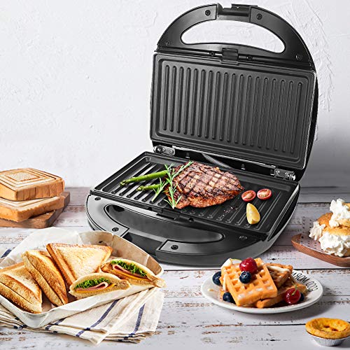Tostiera 850W 4 in1 Waffles Piastra in Acciaio Inossidabile Ultracompact Sandwich/Panini Maker 4 Piastre Removibili con Rivestimento Antiaderente Gancio Chiusura Spie LED BPA Assente