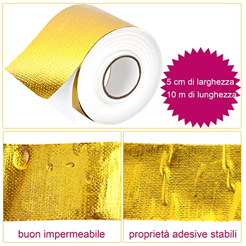 Tosucs Nastro Adesivo in Alluminio con Rete di Rinforzo,Nastro Ignifugo in Fibra di Vetro Ricambio per Motocicli,Nastro Isolante Termico,50 mm x 10 m,Resistente Alte Temperature (Oro)