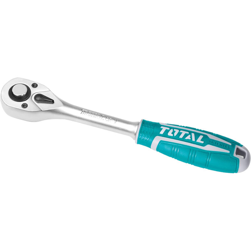 Cricchetto Reversibile 1/4” TOTAL CARATTERISTICHE: Attacco: 1/4 - 45T Lunghezza: 158mm Materiale: Cr-V Cr-Mo Prodotto di qualità LA FATTURA VIENE EMESSA PER IMPORTI SUPERIORI A € 20 E VA RICHIESTA AL MOMENTO DELL'ACQUISTO
