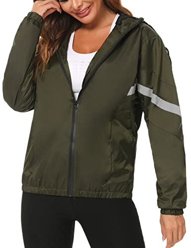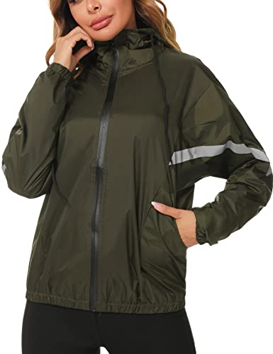 Totatuit Giacca a vento Impermeabile donna Leggera asciugatura rapida Impermeabile Donna antipioggia con Zip e Cappuccio(Verde Scuro,L)