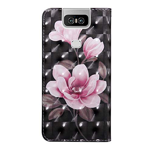 TOUCASA Cover per ASUS Zenfone 6 ZS630KL, Flip Custodia [3D Superficie] PU Pelle Portafoglio Unico Sottile Funzione TPU Antiurto Flip Cover a Libro Custodie Protettivo Case (Magnolia)