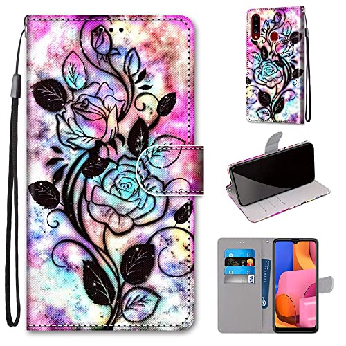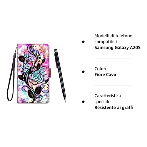 Toucasa Cover per Galaxy A20S,Flip Caso Custodia [Creativo Dipinto] PU Pelle Portafoglio Unico Sottile Funzione TPU Antiurto Flip Cover a Libro per Samsung Galaxy A20S (Fiore Cavo)