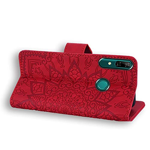 TOUCASA Cover per Huawei P Smart 2019,Flip Custodia [Glitter Diamond] PU Pelle Portafoglio Unico Sottile Funzione TPU Antiurto Flip Cover a Libro Custodie Protettivo (Rosso)