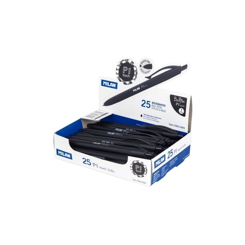 MilanoMilano P1 touch biros nero, fusto dello stesso colore dell'inchiostro. Espositore 25 pezzi.