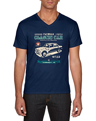 Touchlines Classic Car Mercedes W123 Youngtimer T-Shirt, Blu (Navy), L Uomo