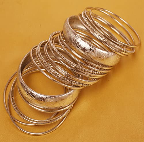 Touchstone Silver Bangle Collection Indiana Bollywood Desiderio Fine Cut Edges Tango Tune rappresentazione di Fine Jewelry Designer Braccialetti serie di 24 in Tono Argento per Le Donne.